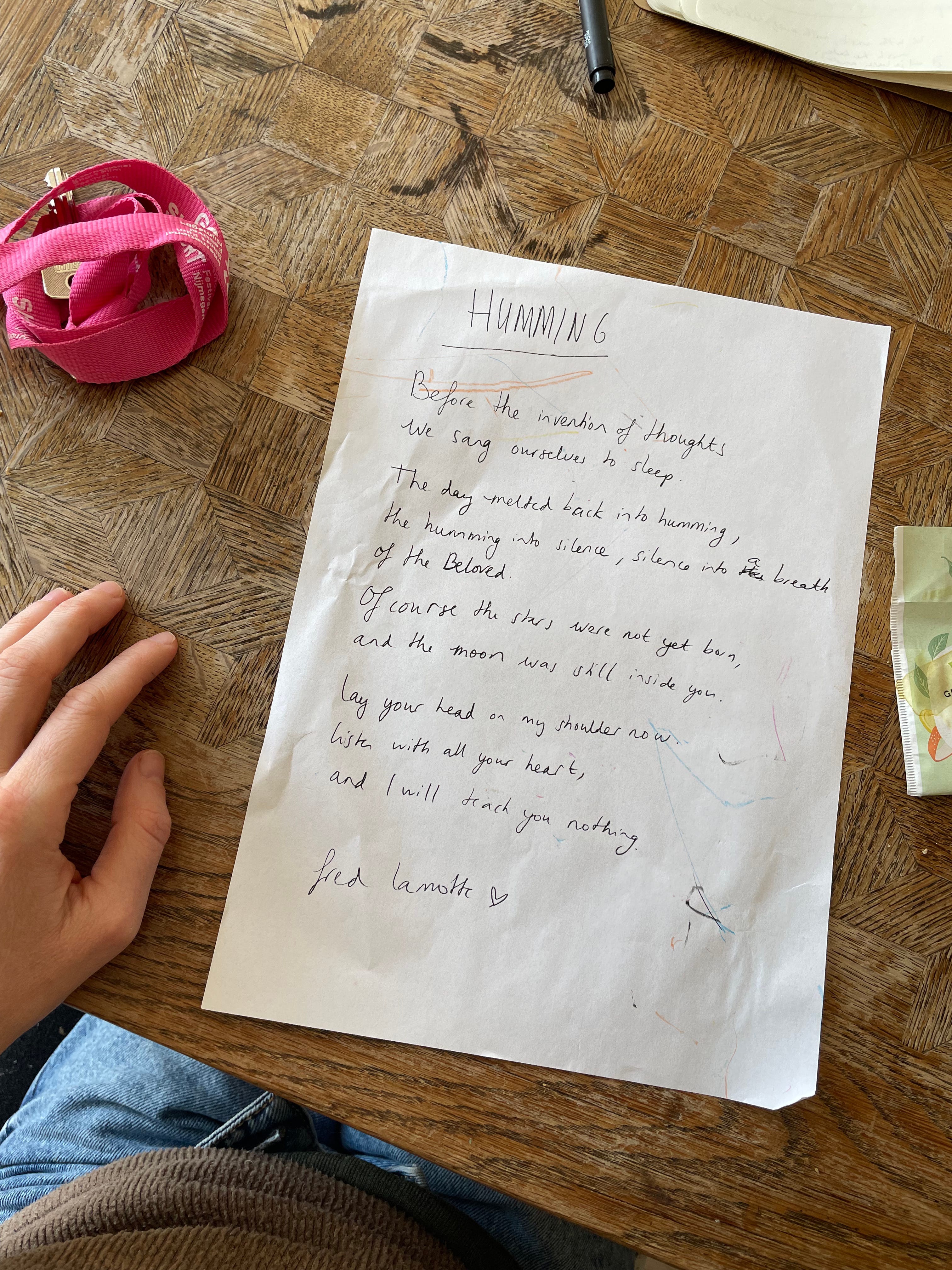 Je hoort hoe ik het gedicht zing in het bestand hierboven. Moge het een moment zijn voor jou om ons samen te verbinden met wat meer waar is in het leven. En dat we ons samen openen voor de wijsheid in het leven.